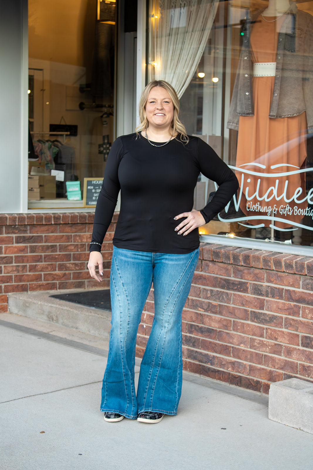 Experience exceptional comfort with the Back to the Basics long sleeve, crafted from buttery soft, brushed microfiber. Its round neck design and perfect stretch with superior recovery make it an ideal layering piece that maintains shape wear after wear. The versatile black color ensures it complements any outfit effortlessly, providing both style and function in one essential wardrobe staple.