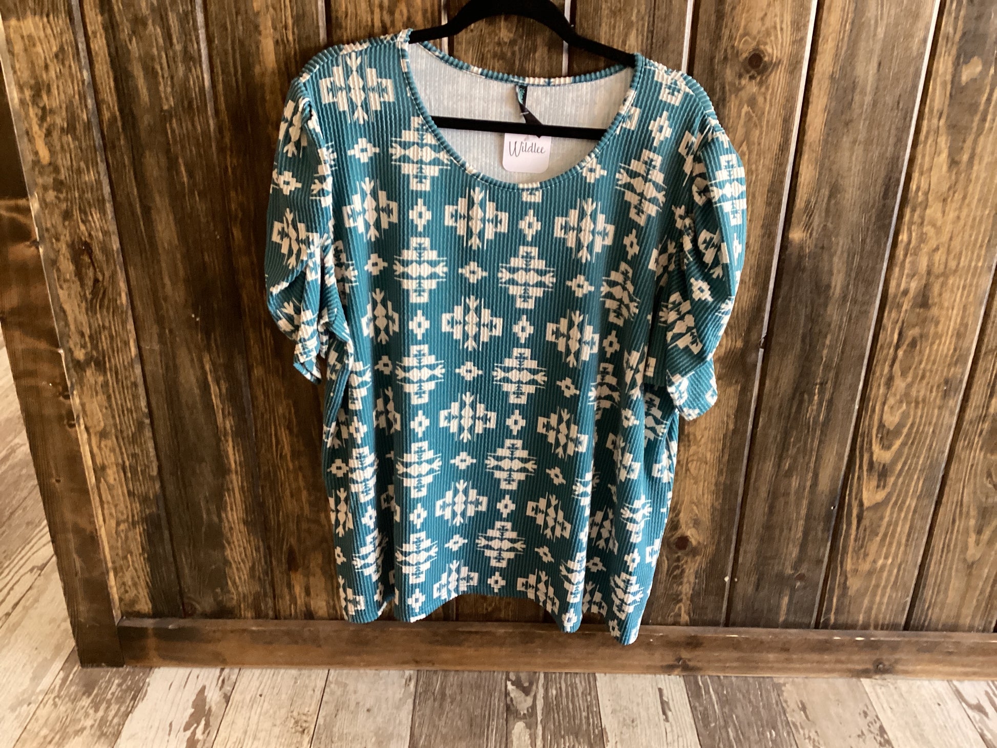 Introducing our Canyon Queen Top, the perfect blend of western style and comfort. Made with a light-weight and flowy material in a beautiful blue shade, this top is the perfect addition to your wardrobe. With its unique western design, you'll feel confident and stylish wherever you go.