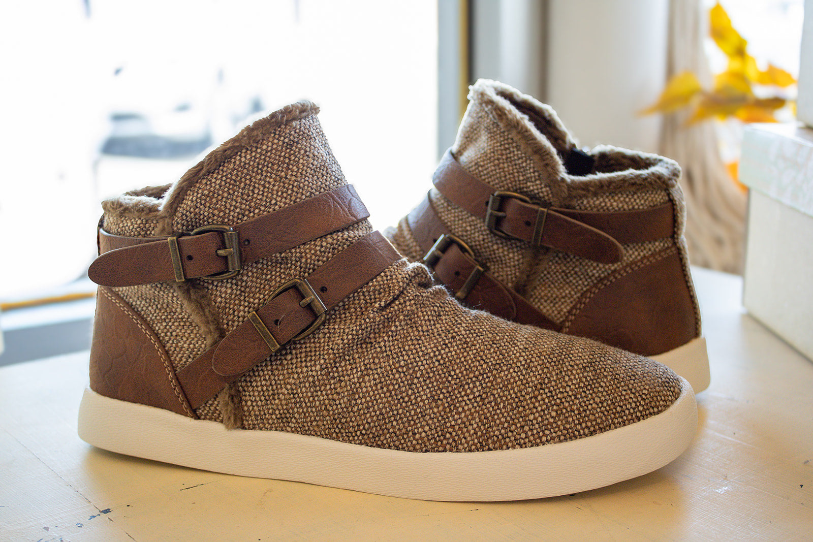 The Cher Sneaker~ Very G is the perfect shoe for when you wanna look as cool as Cher from Clueless. With brown high top styling, luxe leather buckle details, and faux fur lining for comfy-cozy days, you'll make any outfit look totally fly!