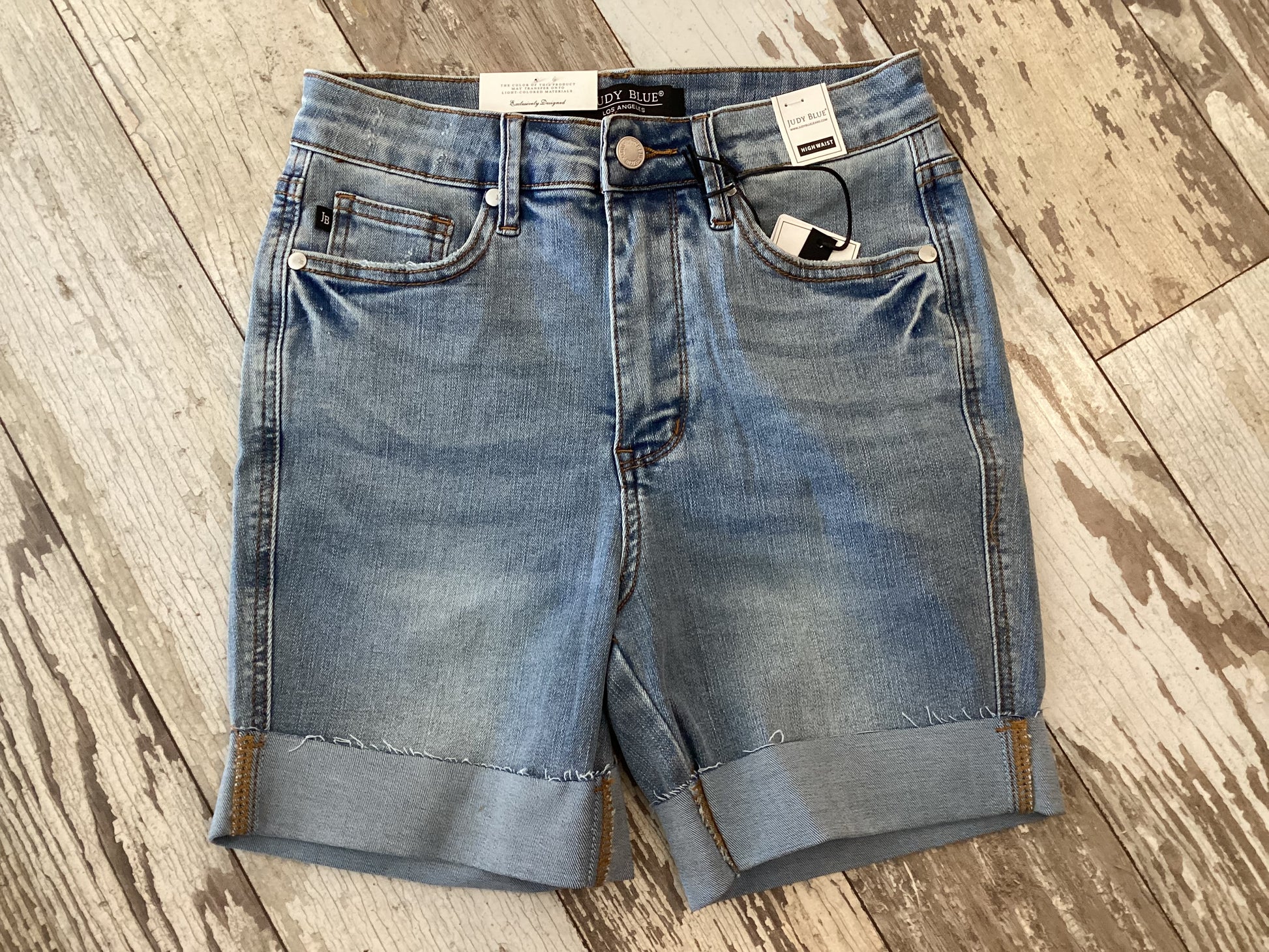 These cuffed, light-weight shorts have minimal distressing. The denim is soft and stretchy making them perfectly comfortable.
