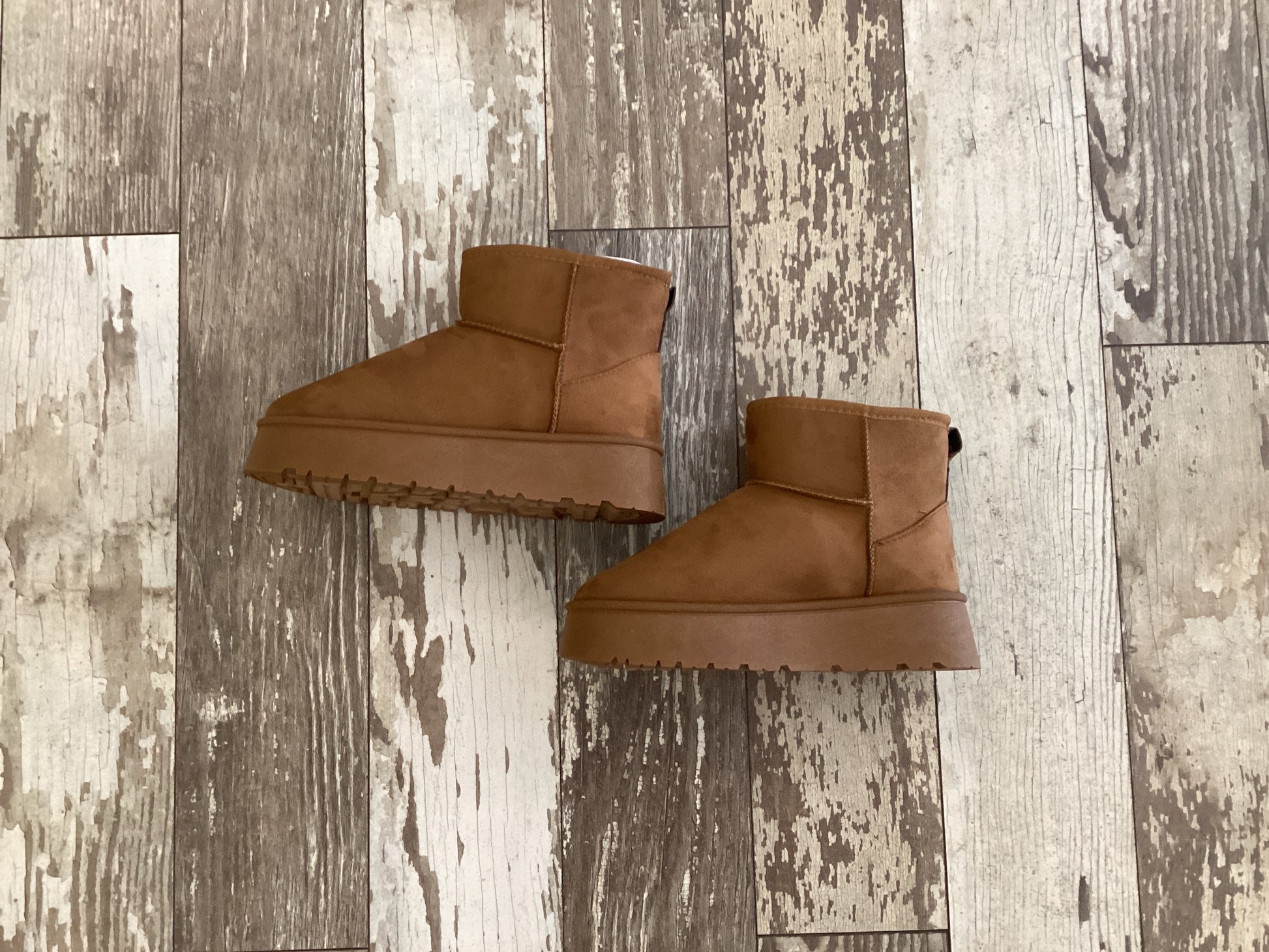 Stay warm and stylish this winter with our Oaklee boots. Featuring a chestnut suede exterior, platform design, and ankle mini length, these boots are both fashionable and functional. The sturdy nonslip sole and fur lining provide excellent traction and warmth, perfect for any winter adventure. Upgrade your winter footwear with Oaklee.