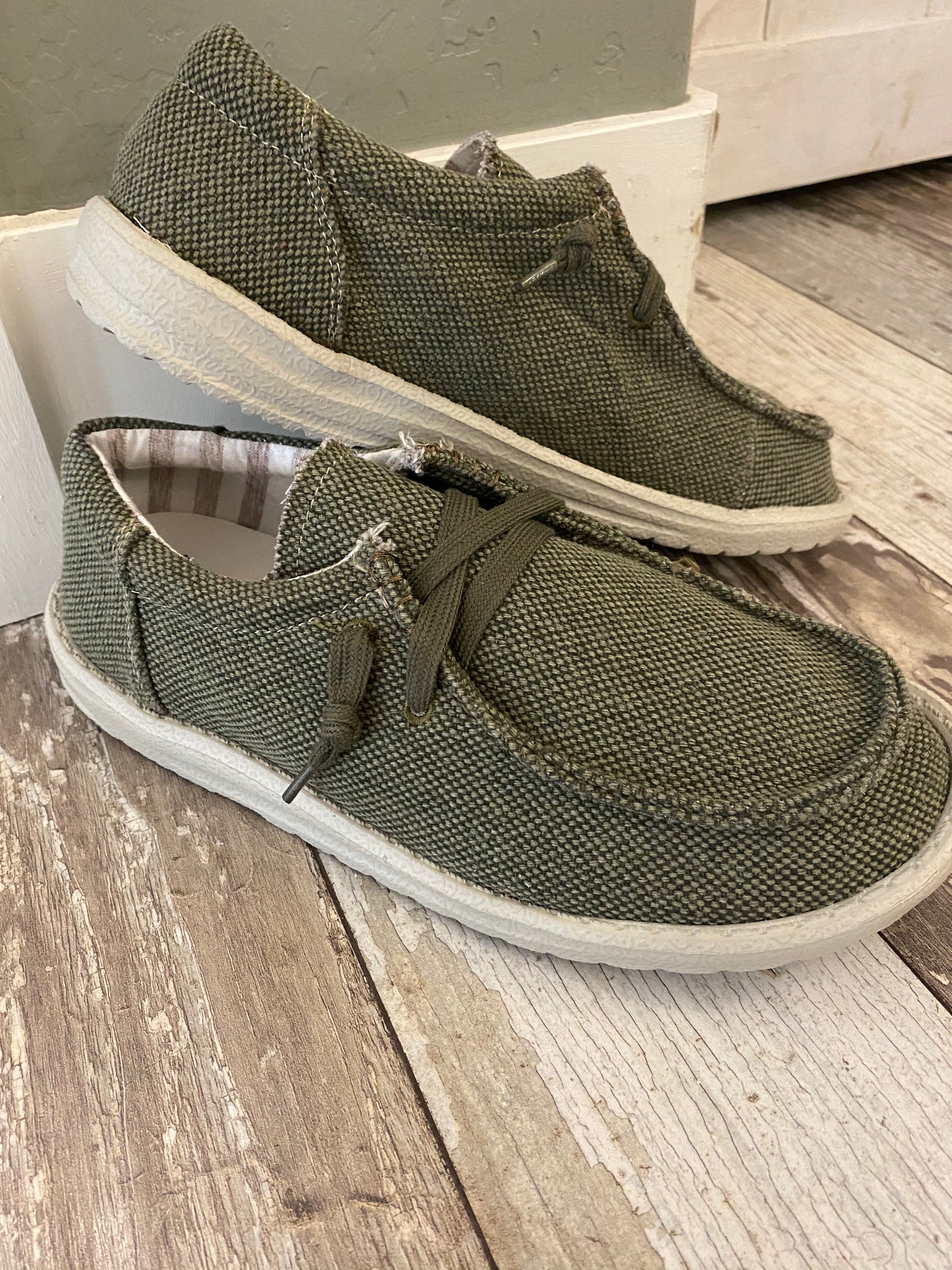 Designed like a Hey Dude, these Mr J slip on shoes will not disappoint! Olive in color.