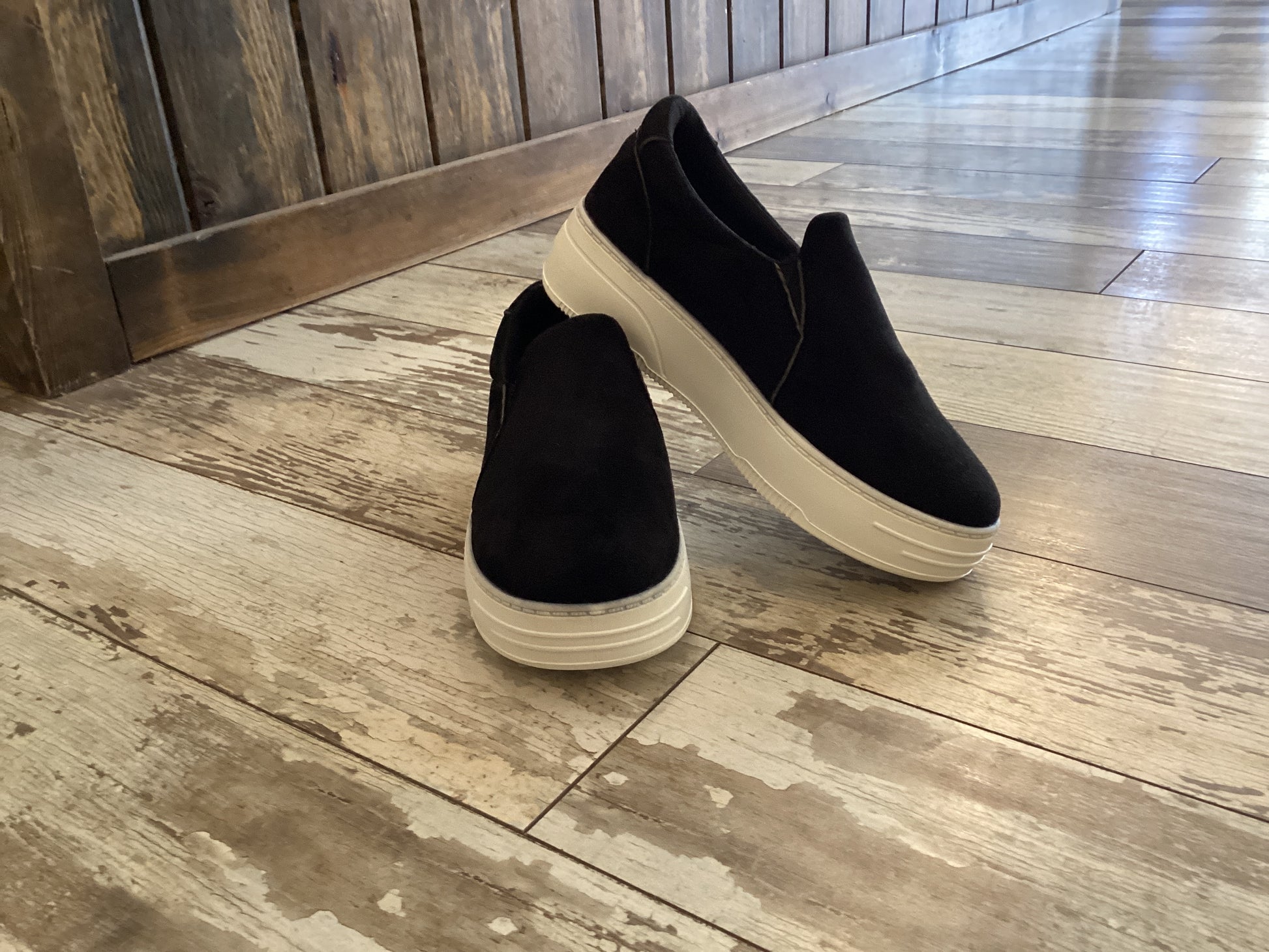This slip on Platform Loafer features a comfortable and cozy design with a sturdy white bottom. The platform adds a touch of fashion to any outfit. Perfect for all-day wear, these loafers will keep you stylish and comfortable at the same time.