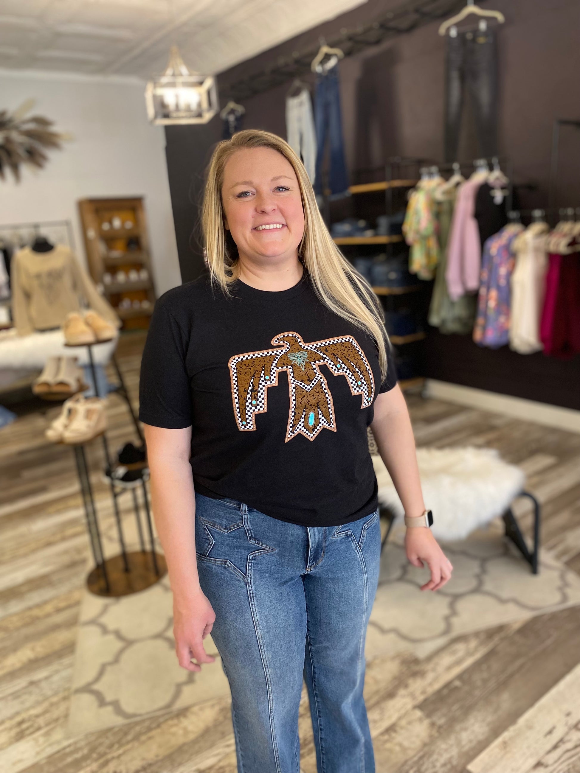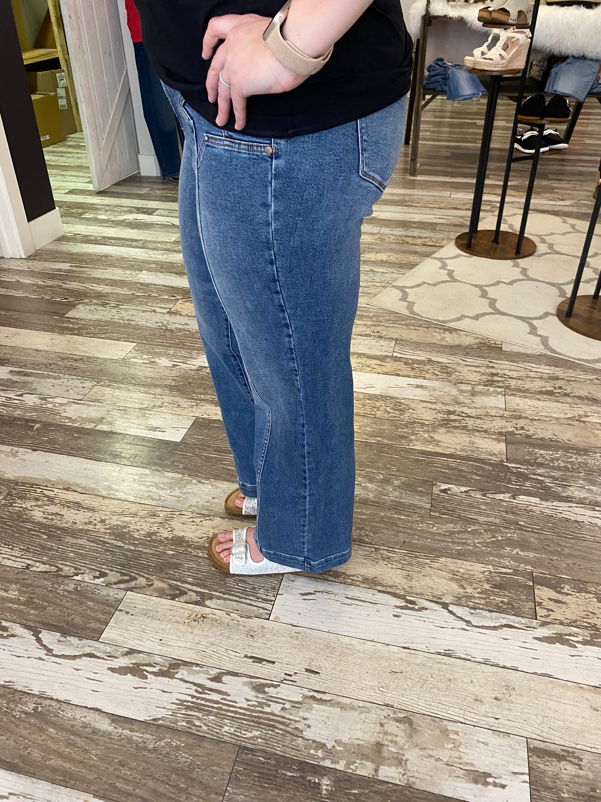 Expertly designed with a medium wash and wide legged fit, this pair of jeans adds a touch of unique style with its star detailing. Crafted with comfort in mind and made with stretchy material, these jeans offer both fashion and function for everyday wear.