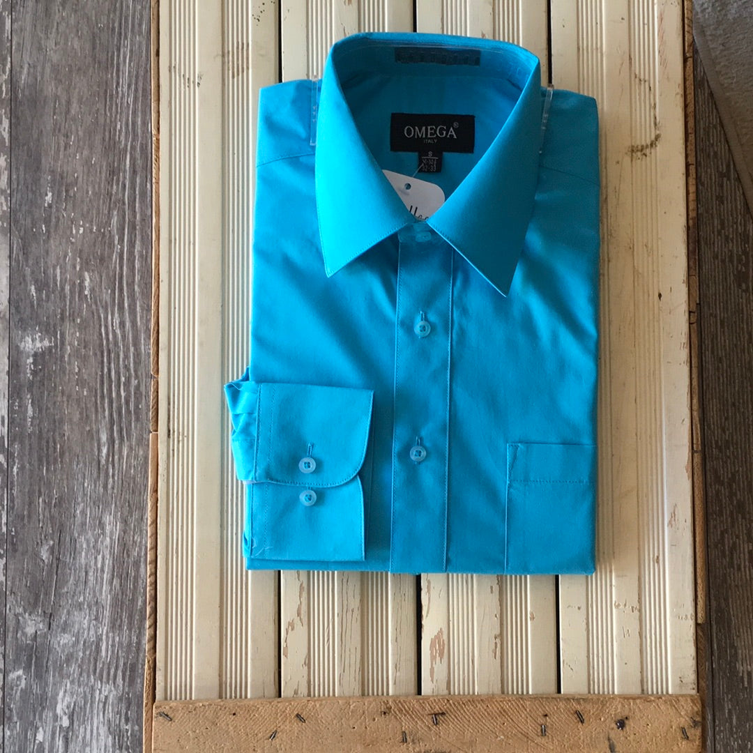 Stay cool and stylish in this bright teal long sleeve dress shirt. Relaxed fit.