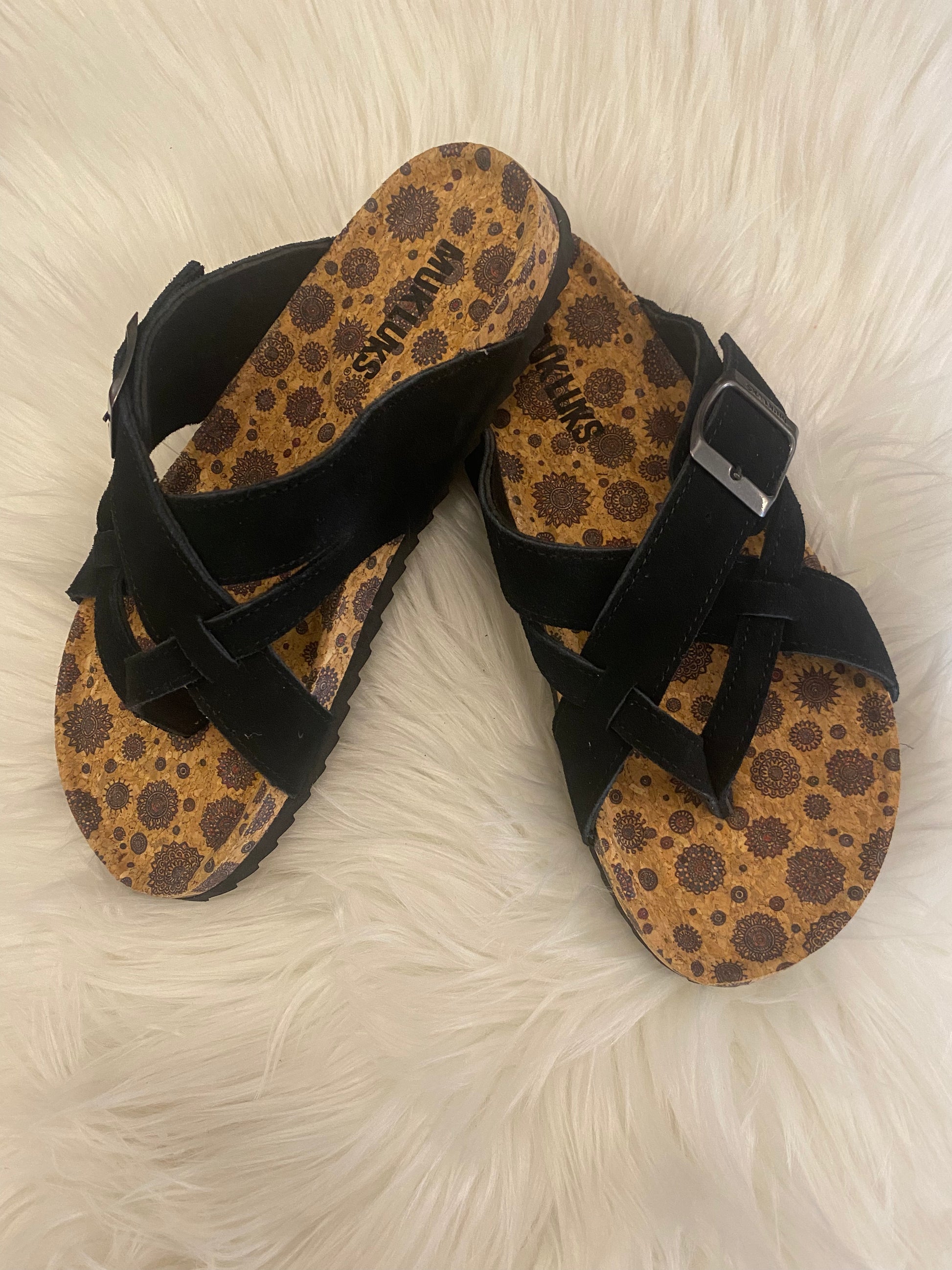 Elevate your summer style with the MUK LUKS Women's Tanner Terra Turf Sandal where fashion meets comfort in every step. Enjoy a cloud-like feel with each step, thanks to the cushioned footbed of the Tanner Terra Turf Sandal. Whether you're navigating city streets or relaxing by the shore, these sandals provide all-day comfort for your on-the-go lifestyle. Crafted with high quality faux leather construction. Along with the chic buckle detail, the Tanner Terra Turf Sandal not only looks eye-catching but also promises durability, ensuring you stay on-trend throughout the season.